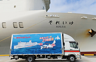 お客様のご要望に応じ宣伝広告・知名度アップのサポート!デザイントラックの定期幹線ルート運行によるPR活動を行っています。